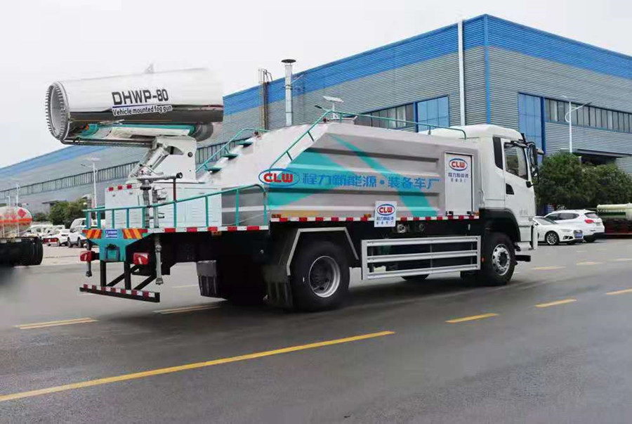 整車性能:側掛式磷酸鐵鋰蓄電池機箱,質保五年;駕駛室一鍵操作控制系統;罐體碳鋼材質或不銹鋼材質;后平臺加裝80米全自動霧炮機組,霧化降塵作用。