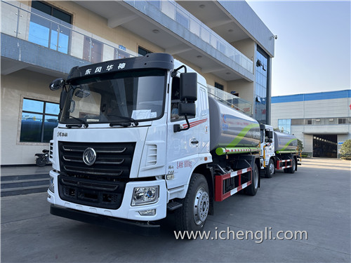 根據客戶要求:罐體容積約15立方。新款工藝流水線標準化生產灑水車,大氣,漂亮!專用功能為:前沖后灑,帶側噴,罐體后帶工作平臺,平臺上安裝綠化灑水高炮,灑水炮可全方位旋轉,并有多種雨狀可調節(大雨、中雨、毛毛雨、霧狀),泵可自吸自排,帶自流閥,帶消防接頭,帶過濾裝置。車輛交付客戶特別滿意!感謝信任!