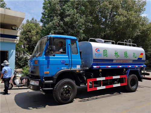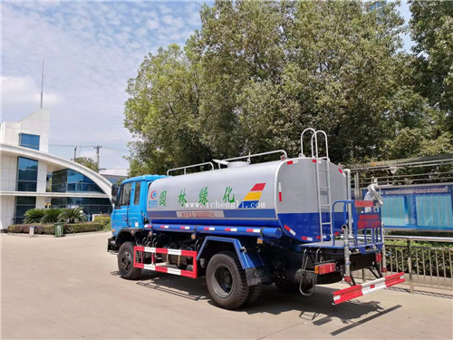 根據客戶要求:罐體容積約12立方;專用功能為:前沖后灑,帶側噴,帶高位花灑,罐體后帶工作平臺,平臺上安裝綠化灑水高炮,灑水炮可全方位旋轉,并有多種雨狀可調節(大雨、中雨、毛毛雨、霧狀),泵可自吸自排,帶自流閥,帶消防接頭,帶過濾裝置。