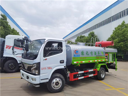 根據客戶要求:罐體容積約5立方。專用功能為:前沖后灑,帶側噴,罐體后帶工作平臺,平臺上安裝綠化灑水高炮,灑水炮可全方位旋轉,并有多種雨狀可調節(大雨、中雨、毛毛雨、霧狀),泵可自吸自排,帶自流閥,帶消防接頭,帶過濾裝置。根據客戶特殊要求后平臺加裝全自動柴油機霧炮噴霧機組,可做降塵實用,遙控操作。車輛交付客戶特別滿意!感謝信任!