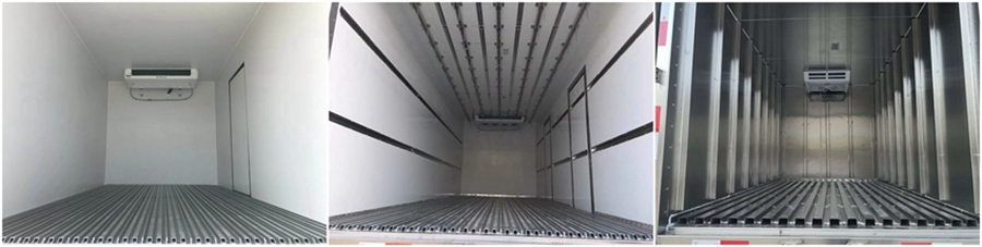 六、選裝配置:可選裝廂體側門(單側門或雙開門),可選裝鋁合金導風槽(導風槽有助于冷氣循環,提升制冷效果),可選裝廂體頂部加固肉勾滑道(直滑道 或 對接互通式拐彎滑道)。可選裝廂體內部采用全面不銹鋼材質(海鮮運輸必須加裝,海水有腐蝕性),可選裝280V-380V外接電源(停車熄火后可插電冷機繼續制冷工作),可選裝溫濕度監控記錄儀(帶打印功能)。