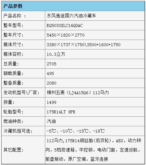 六、選裝配置:可選裝廂體側門(單側門或雙開門),可選裝鋁合金導風槽(導風槽有助于冷氣循環,提升制冷效果),可選裝廂體頂部加固肉勾滑道(直滑道 或 對接互通式拐彎滑道)??蛇x裝廂體內部采用全面不銹鋼材質(海鮮運輸必須加裝,海水有腐蝕性),可選裝280V-380V外接電源(停車熄火后可插電冷機繼續制冷工作),可選裝溫濕度監控記錄儀(帶打印功能)。