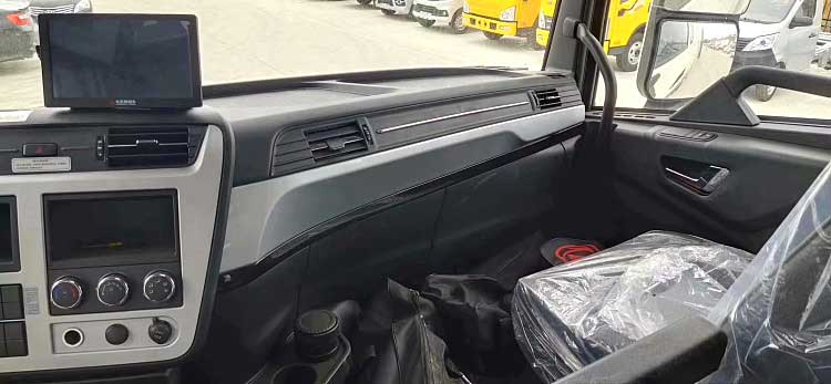 9.6米冷藏車_河南洛陽東風(fēng)天龍KL前四后八冷藏車內(nèi)飾功能:駕駛室座椅設(shè)計合理,乘坐舒適。駕駛室內(nèi)弧形工作儀表臺,為駕乘人員留出更多活動空間,這樣駕乘空間更大。