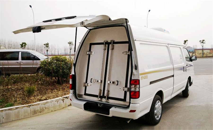七 廂體配置:我公司面包式冷藏車工藝采用專用模具壓制成型,保溫性能達到國家A級標準,保溫材料為無縫隙填充聚氨酯發(fā)泡,廂體內外采用高強度玻璃鋼板材質,樹脂膠無縫連接,后配全密封雙開門,不銹鋼門框包邊,不銹鋼合頁和鎖件,廂體內部加裝LED夜間照明燈。