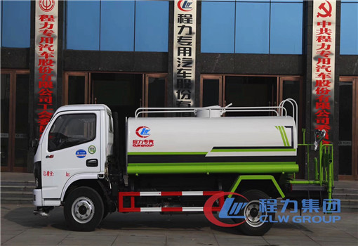 灑水車功能:罐體容積:5立方,前沖(噴)、后灑、帶側噴(花灑)、帶后工作平臺、平臺上安裝綠化灑水高炮(炮噴射形狀可調節:直沖、大雨、中雨、毛毛雨、霧狀、可連續調節,360°旋轉),配消防接口,自流閥,濾網,帶自吸自排功能。