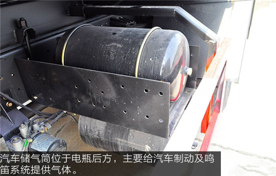 汽車儲氣筒位于電瓶后方,主要給汽車制動及鳴笛系統提供氣體。