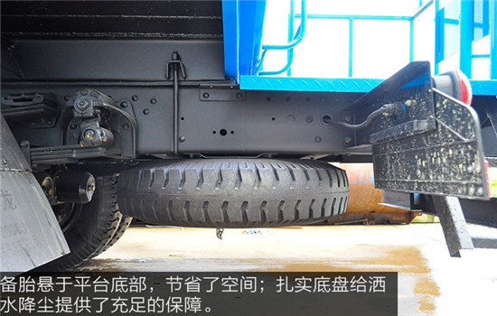 備胎懸于平臺底部,節省了空間,一定程度上也保護備胎免受雨水陽光的侵蝕,設計理念值得認可。