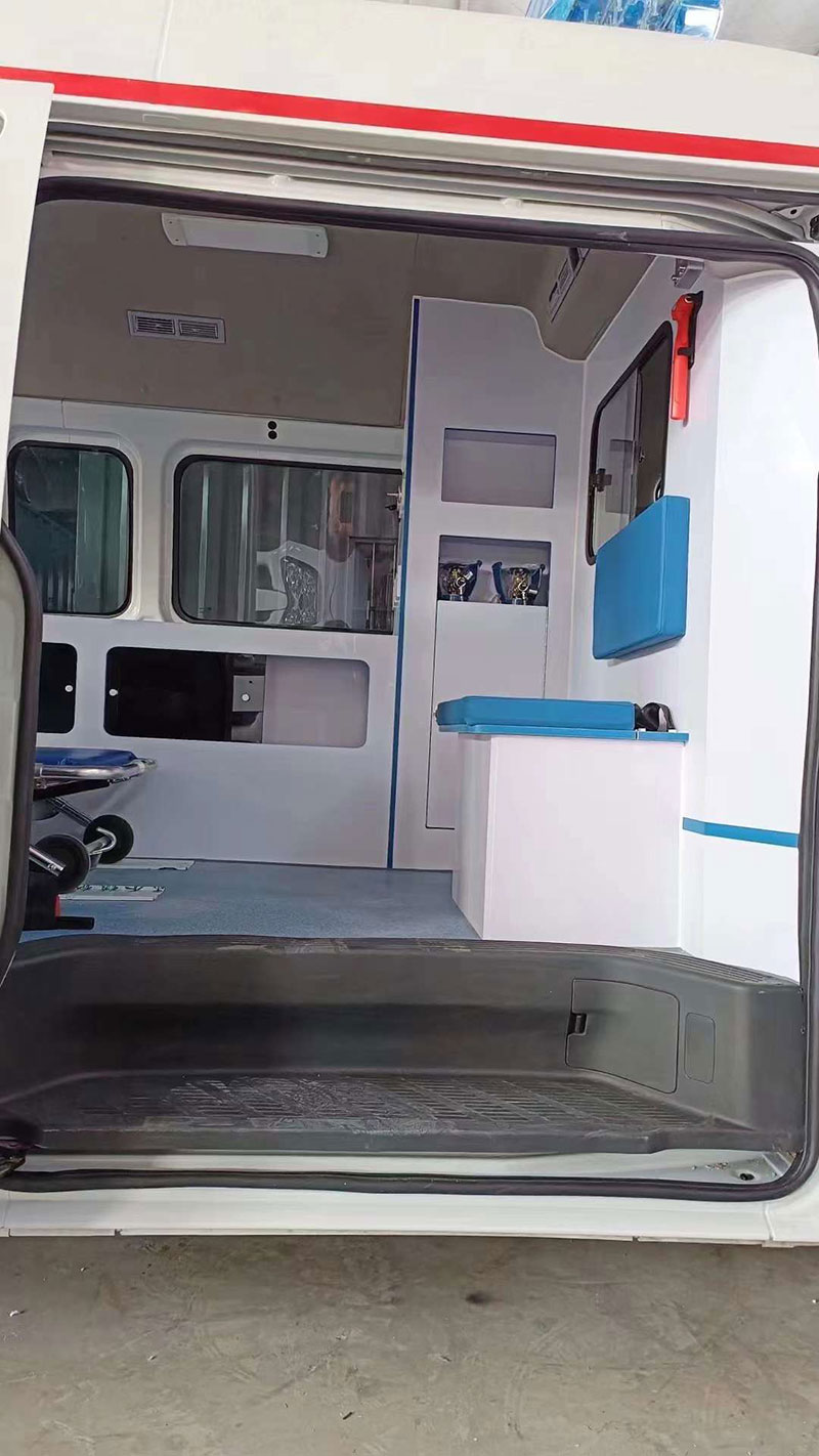 監護型救護車_福田風景G7救護車上裝配置:汽車內飾環保材料。救護車的車輛中部和頂部帖的有紅色或藍色的反光標識。標準醫療地板,采取PVC樹脂為原料,經過特殊工藝加工,形成一種導靜電網絡,使PVC地板具有永久性防靜電的功能。艙內有定向排風系統,可將空氣過濾器過濾后排放到外界,最大限度地下降了醫患人員交叉感染的可能,也使排到艙外的空氣保持潔凈安全。救護車醫療艙的尺寸跟艙內配置的儀器尺寸多少有直接的關系??臻g設計合理,急救的鏟式擔架放置在柜式的床內。10公升氧氣瓶2個,帶減壓閥。醫療艙內右側安裝柜式床帶儲物柜及單人座椅,帶卷筒式安全帶。