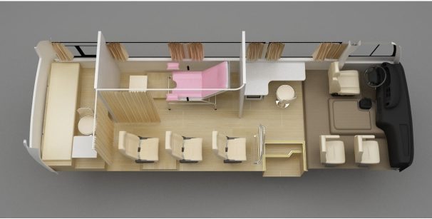 海格7米婦女體檢車醫療車底盤配置:能最大程度的保護駕乘人員。底盤型號:KLQ6720BE6。外形尺?(mm)7000×2040×2680,2720,2745,2790mm。發動機功率110。燃料種類柴油。車身根據工作需要將分為以下幾個區域:放射區、醫生控制區、檢驗區等。
