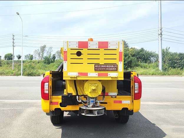 國6皮卡除雪車_福田馭途雙排座除雪車實拍圖_參數,在功能方面配備除雪鏟,掃雪滾刷,吹雪機,融雪撒布機,便于清理路面積雪。可以立體的清除積雪快捷、方便,是社會上普遍選用的人工除雪鏟。通過車載撒布機撒布隔雪濟、鹽、氧化鈣隔雪濟等來除去冰雪的。機車推送后借助前端的犁鏵除雪器,將積雪推向線路一側或兩側,用來清理路面積雪。張開的翼板,可增大除雪面。配有兩個橡膠車輪,能降低操作力度,更加靈活利于。