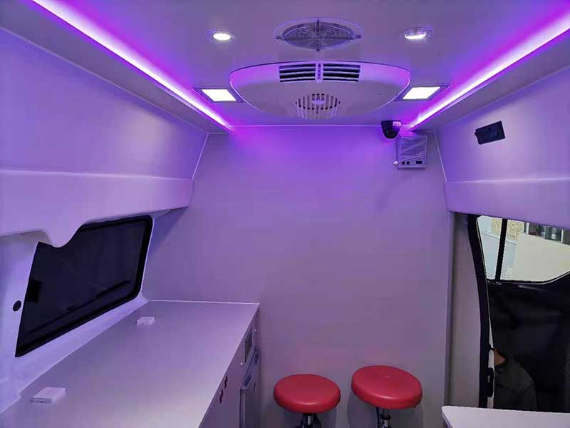 新全順V362核酸采樣車多功能檢測(cè)車,車內(nèi)材料有耐腐蝕鋼、鋁合金、不銹鋼等為主,分別經(jīng)過鍍鋅鈍化、導(dǎo)電氧化等工藝處理。辦公隔離屏采用透明材質(zhì),清洗比較方便。監(jiān)控系統(tǒng)海康威視,各作業(yè)區(qū)獨(dú)立錄像。全車設(shè)計(jì)有三個(gè)窗口,分別是注冊(cè)窗口、采集窗口和樣品處理窗口。搭載了生物樣本存儲(chǔ)箱、駐車空調(diào)、車內(nèi)新風(fēng)凈化系統(tǒng)等各類先進(jìn)功能儀器,設(shè)計(jì)非常人性化。圓形照明燈、車外照明燈、室內(nèi)照明燈,LED 形式。