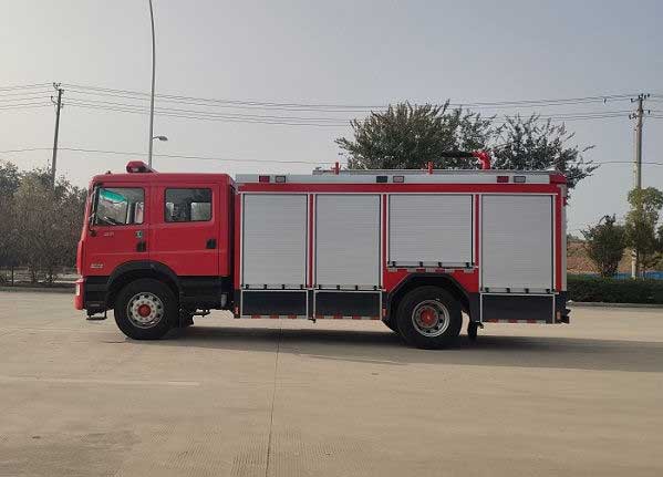 東風多利卡D9_8方水罐消防車上裝配置:器材箱結構布置合理,器材取用便于,器材的存放都是有特制夾具固定裝置,更加牢固。器材箱應用內外雙層骨架搭建,結構穩固,外骨架應用優質碳鋼板材,內骨架應用高強度鋁合金型材構成。泵房設置水泵系統、各種儀表、液位表、壓力表、指示燈、真空表等裝置。器材廂卷簾門選擇優質鋁合金設計制作,啟閉靈活、噪音低、密封性好、外形精美。