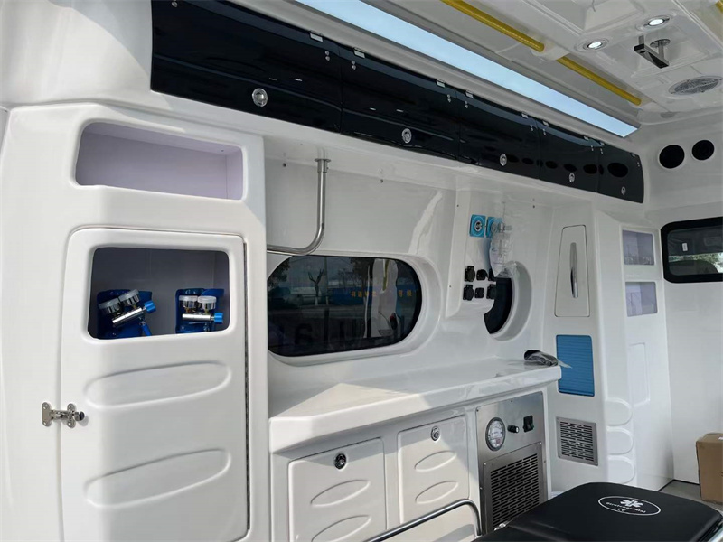 福特新時代全順V348短軸救護車上裝配置:帶儲物柜和單人座椅的柜式床安裝在醫療艙的右側,帶卷軸式安全帶。短途轉運的救護車,設備配備能夠相對易于些,只需要擔架、氧氣和輸液掛鉤即可。流線型外表,行駛時能有效引導周圍氣流,減少空氣阻力和燃料消耗,有助于提高汽車行駛穩定性和發動機的冷卻條件,車身內部具有超級好的通風。艙內有定向排風系統,可將空氣過濾器過濾后排放到外界,不污染外界環境,最大限度地減少了醫患人員交叉感染的可能。消毒燈1只。氧氣流量和壓力閥。醫生座椅是單獨的,安裝在醫療艙前部,安全帶是帶卷筒式的。