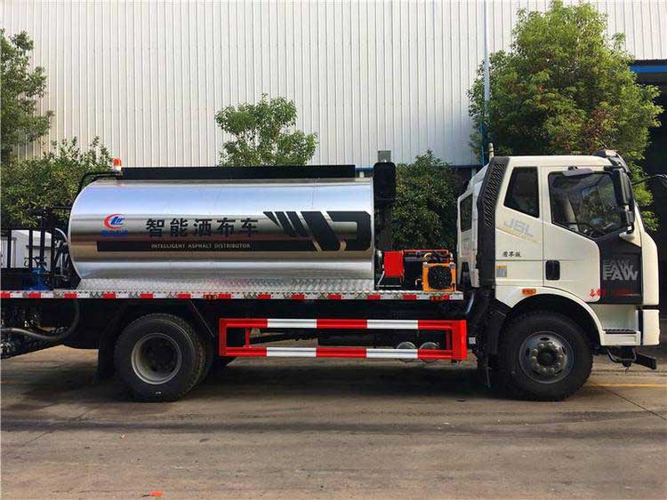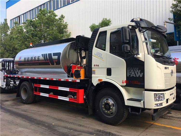 解放J6_12方智能型瀝青灑布車,全車效率高,工作車速:1.5--20km/h。配備優質汽油發電機。汽車外包裝采用不銹鋼板,耐用精美。意大利進口柴油燃燒器加熱,質量更好。整車瀝青灑布量:0.2~3.5L/m2。