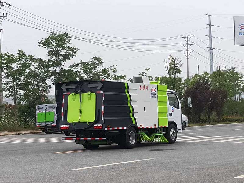 東風多利卡D6_5.5方掃路車,掃盤擺線馬達選取國內知名品牌,質量有保障,選用壽命長穩定穩當。掃刷由鋼絲和聚丙烯絲制成,耐磨性好,強度高。垃圾箱選擇雙層內膽不銹鋼結構,內部加裝過濾網板,能有效地防止樹葉、塑料袋之類的輕飄物堵塞風口及灰塵的排出。結構優秀、吸塵輕易,吸盤由四面金屬板圍成,呈扁平狀,與地面圍成具有一定容積的倉體。江鈴副發動機。中置吸盤掃路車。