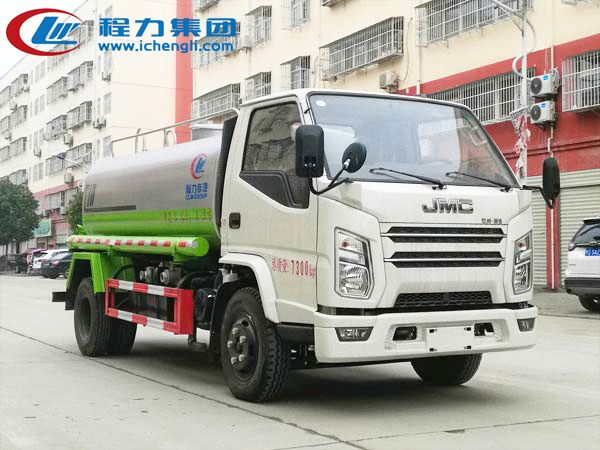 專用配置:罐體容積:5立方米,罐體鋼板為4mm碳鋼Q235材質專用容積板一次成型,罐內隔板具有防波作用,以減輕汽車行駛時罐體液體沖擊;配大功率專用灑水泵,泵可自吸自排;整車前沖、后灑、側噴、后平臺帶綠化灑水炮,灑水炮可全方位旋轉,可連續調成直沖狀、大雨、小雨、毛毛雨;前封頭帶水位計,后平臺主管路帶1寸澆花接口,后爬梯,帶1個消防接頭,帶1個自流閥,1個過濾裝置。