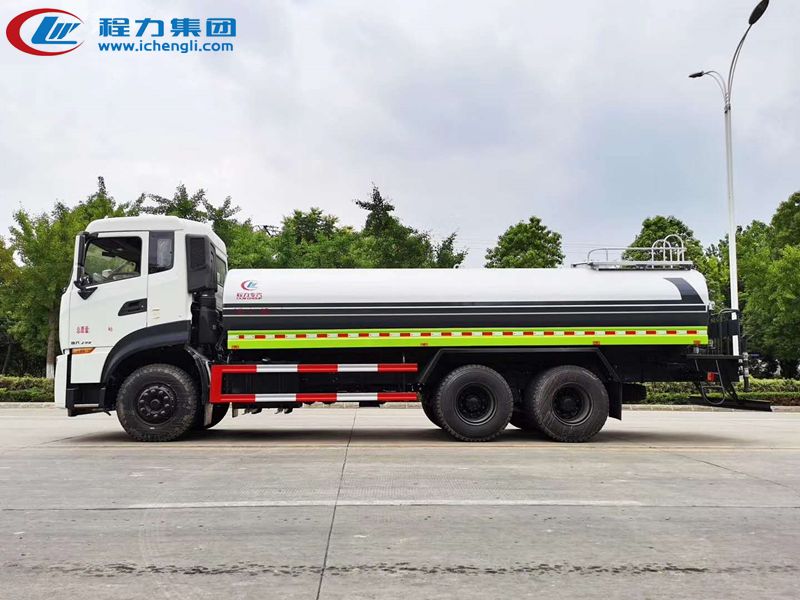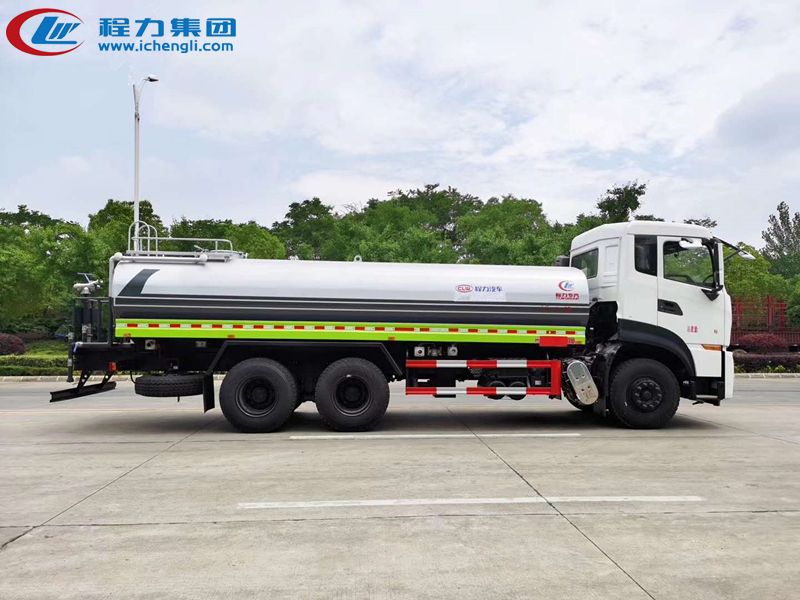 東風天龍KL/VL后雙橋灑水車是一款采用國六排放標準東風天龍后雙橋原裝底盤改裝的環衛車,該車配置豪華,駕乘舒適,該車罐體容積:18立方米,標配前沖、后灑、側噴、后平臺高炮,是園林綠化、小區物業、公路養護的常用車型。