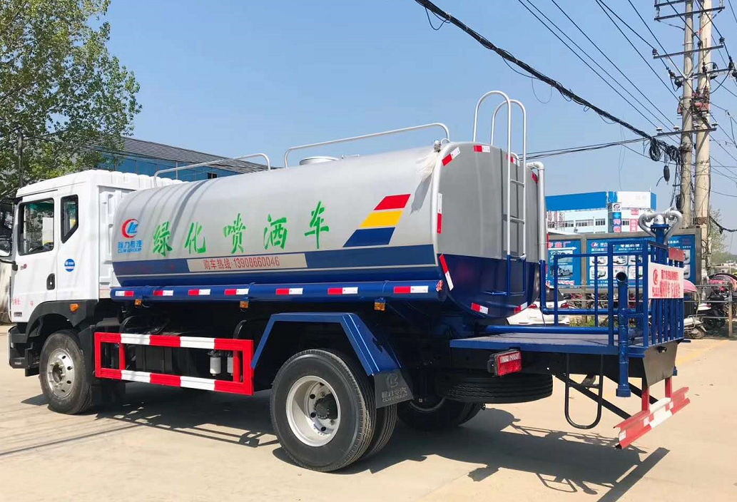 這款程力公司出產(chǎn)的東風(fēng)D9大多利卡多功能綠化灑水車,灑水車采用了東風(fēng)股份公司的正宗原裝底盤,東風(fēng)康明斯180馬力發(fā)動(dòng)機(jī),六缸機(jī),國(guó)五排放;帶空調(diào)和方向助力,車頭前配置前沖,后灑,側(cè)噴,高位花灑,后平臺(tái)帶綠化灑水車炮,罐體采用4mm武鋼優(yōu)質(zhì)碳鋼制作,裝水12噸;罐體后帶工作平臺(tái),平臺(tái)上安裝綠化灑水高炮,炮可噴灑農(nóng)藥,并有多種雨?duì)羁烧{(diào)節(jié)(大雨中雨毛毛雨霧狀),泵可自吸自排,帶自流閥,帶消防接頭,帶過(guò)濾裝置。