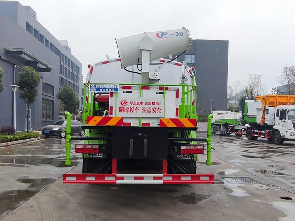 其它標配為:前沖、后灑、側噴、后工作平臺、360度可調節綠化水炮,自流閥、濾網、消防接口(可連接消防栓取水,可作應急消防使用),罐前量管(觀察罐內水位)、罐后爬梯、罐上罐口、帶簡易護欄、罐側雙炮筒、炮筒內3米長鋼絲塑膠抽水管兩根,罐體表面三層烤漆工藝,防銹、耐腐蝕,其余由廠家標配。