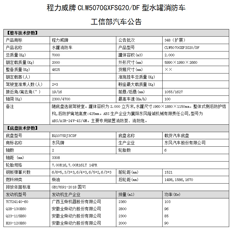 標(biāo)準(zhǔn):東風(fēng)小多利卡水罐消防車是由二類汽車底盤、水罐、消防水泵、管路、儀表電路系統(tǒng)等部件組成,該車裝配鋁合金后爬梯(可拆卸),泵房在整車尾部,罐體為鋼板焊接式,罐體材質(zhì)為優(yōu)質(zhì)碳鋼板,罐體內(nèi)部做防腐處理,載水2立方。該車裝備CB10/20消防泵,PS20消防炮。