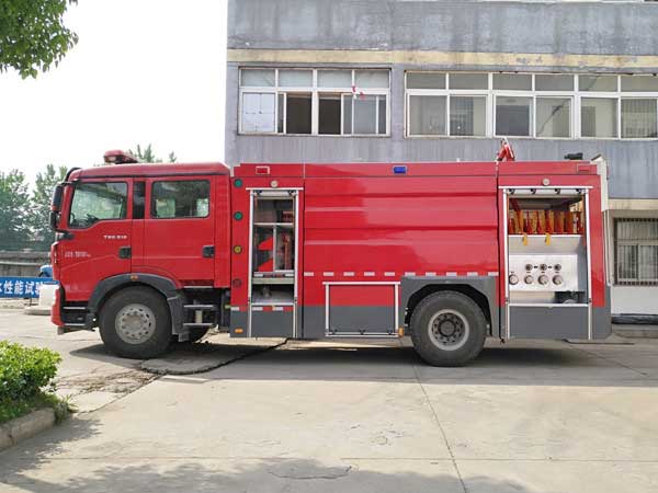 8噸水罐消防車_重汽豪沃T5G水罐消防車,器材廂卷簾門選取優(yōu)質(zhì)鋁合金設(shè)計制作,外形上非常好看,開關(guān)順暢靈活,噪音低,密封性好。警報器功率為100W;警報器、警燈、爆閃燈電路為獨立式附加電路,控制器件安裝在駕駛室內(nèi)。泵房設(shè)置水泵系統(tǒng)、各種儀表、液位表、壓力表、指示燈、真空表等裝置。在結(jié)構(gòu)方面,器材廂布置合理、器材取用更加輕易,特制夾具固定裝置使器材存放更加牢固。器材箱采取內(nèi)外雙層骨架搭建,結(jié)構(gòu)穩(wěn)固,外骨架采取優(yōu)質(zhì)碳鋼板材,內(nèi)骨架采取高強度鋁合金型材構(gòu)成。根據(jù)需求設(shè)置的儲物盒放置在器材盒室內(nèi)。