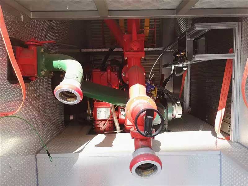 5噸泡沫消防車_東風凱普特雙排泡沫消防車,該車有特別多突出的優勢和特點,例如動力澎湃、底盤扎實耐用、機動性強、噴灑射程遠等。花紋鋁板制作的內飾板表面經過陽極氧化處理,堅固耐用。罐體封閉性好,經受住24小時靜水壓測試,無滲漏。附在燃燒油料的表面的泡沫把氧氣和易燃物隔絕開,阻止燃燒的持續進行,達到了滅火的效果。上裝廂體采用高強度鋁合金型材制成,內外蒙皮均采用波紋鋁板整體制造。泵房設置水泵系統、各種儀表、指示燈、液位表、壓力表、真空表等裝置。流線型設計的全車、新穎的外表、機動靈活。