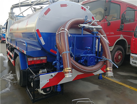 采用東風原廠底盤,D6駕駛室,3308軸距,全柴115馬力發動機,萬里揚5檔變速箱,7.00R16鋼絲胎。罐體容積3方,配億豐SK-6水循環泵,真空防溢閥,洗手箱270度旋轉吊桿座,8米吸污管,可加裝灑水功能,帶側噴,高炮槍,噴灑可調節。
