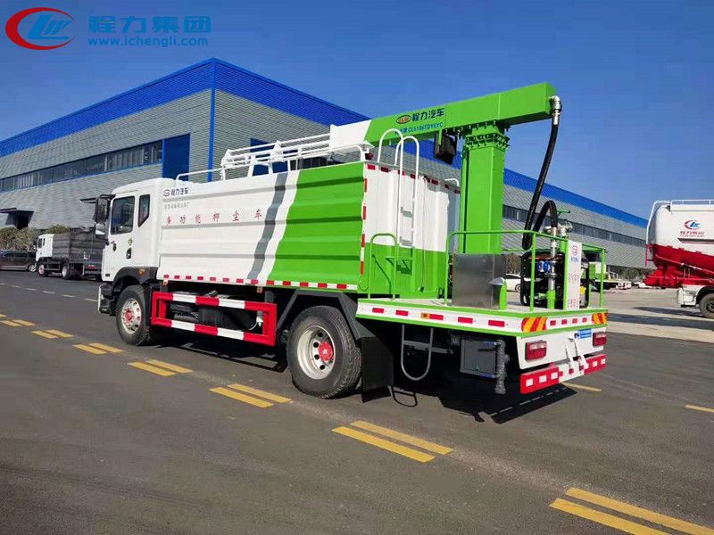 上裝配置:罐體容積:15立方,罐體內部做防腐,帶加熱功能,前沖、后灑、側噴、高炮,抑塵噴灑桿(帶旋轉伸縮功能),噴灑桿離地3-4米 。后部平臺帶8KW副發(fā)電機組,罐體內部加兩個1.5KW電動馬達(帶攪拌功能),平臺和噴灑桿藍色。遙控操作噴灑桿上下左右旋轉,國內知名品牌回轉支撐,大品牌油缸。