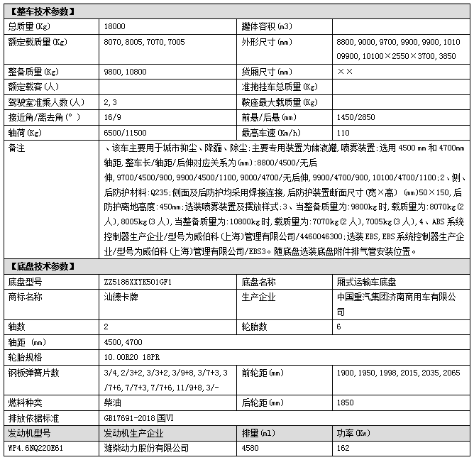 上裝配置:罐體容積:12立方,方形罐體,罐體鋼板采用Q235碳鋼鋼材制作,鋼板厚度5mm,配大功率專用灑水車泵,帶前沖、后灑、側噴功能,尾部帶工作平臺,平臺上安裝綠化高炮和風筒式霧炮機(霧炮可用于農藥噴灑、多功能抑塵等功能),帶柴油副發電機組,操控方式:手動/無線遙控器(遙控距離100米),帶消防接口,自流閥、可自吸自排,該車輛結構緊湊,布局合理,部件做工精細,產品配置完善,操作性能好。后平臺可選裝50-60米、60-70米、80米、100米、120米霧炮機組;其他標配。